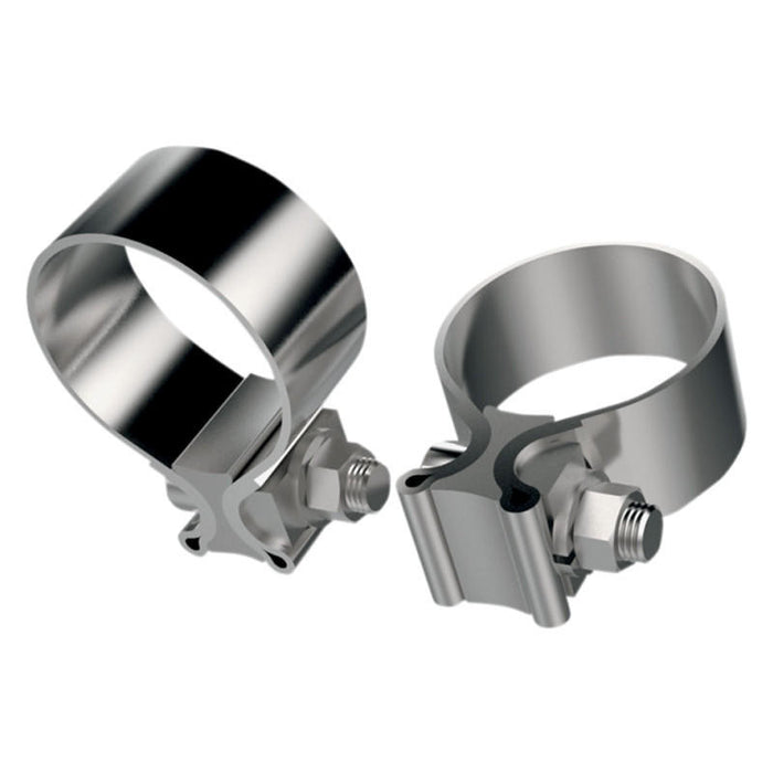 • Replace 1" W OEM muffler clamps; fit mufflers with 1.75" i.d. inlets