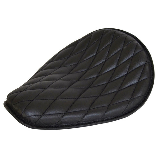 Our diamond stitch leather solo seat starts construction with a heavy gauge powder-coated seat pan.  The pan has a nice kick in the back and curvature in the front for comfort on your inner thighs.  The pan is fitted with quality foam before being covered in genuine leather on the top and bottom.  This quality piece will last as long as your bike.
