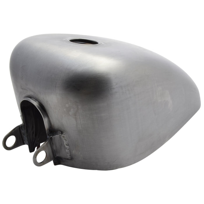 This gas tank is a stock replacement for Harley Davidson Sportsters from years 1986-2003. Constructed from 18 gauge steel, it is thicker than stock Harley tanks. This tank has the later style mounting hole size for use with rubber grommet mounts. Mounting hardware and rubber bushing are not included. Petcock bung available on left or right side- just allocate your side when purchasing.