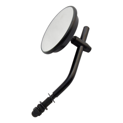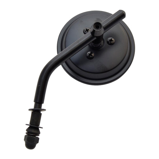 Universal CycleOnly 1 left!Universal 3" round mirror with 4" stem will fit left or right side of stock Harley Davidson controls. Satin black finish.