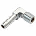 90 degree elbow hose barb. 1/8" NPT threads with nipple for 1/4" ID hose. Chrome-plated brass. Made in the USA. Great for oil tanks or gas tanks.