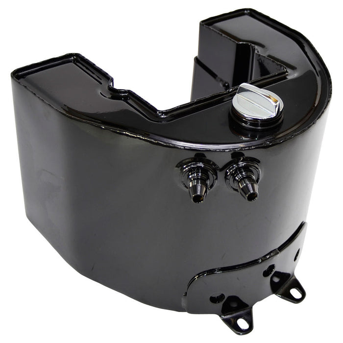 This gloss black wrap around oil tank is a direct replacement for Harley Davidson Big Twins (Knucklehead and Panhead models) from 1936-1957. It also makes a great option for your custom chopper build. The edges are seam welded just as the originals were and the oil tank includes a screw in cap/dipstick.