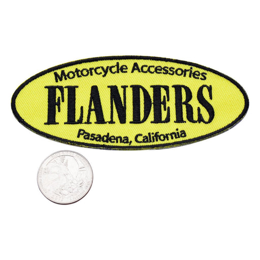 Universal Cycle1+ in stockFlanders motorcycle parts and accessories iron-on patch. Measures 4" x 2"