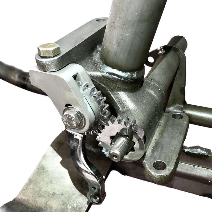 Designed to convert your 36-57 HD mechanical brake rod to pull instead of push when running a LEE, DISHONG, or PHONG pedal straight off the cross over shaft. New version features rust proof stainless steel Clevis with brass bushing and hard chrome gears. Just think.. it's easier to pull a noodle than it is to push a noodle right?