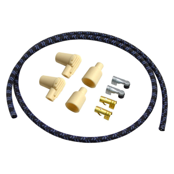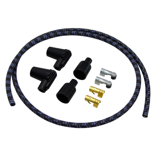 7mm Braided Cloth Motorcycle Spark Plug Wire Kit - Black / Blue