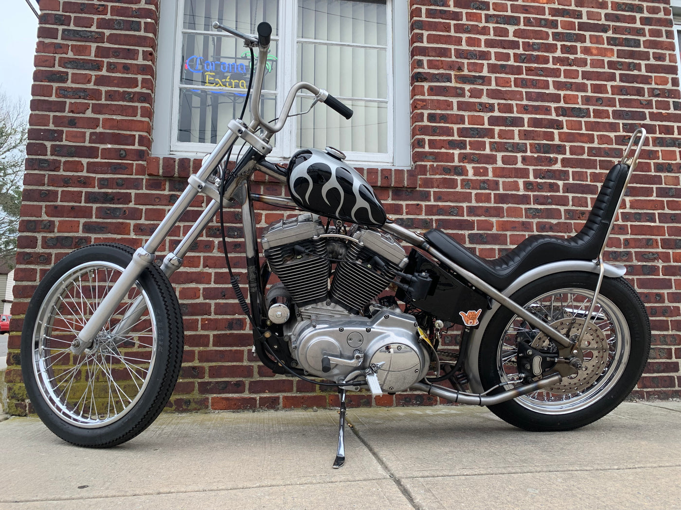 1997 Sportster chopper by Duffy Metalworks using a throttle addiction sportster hardtail