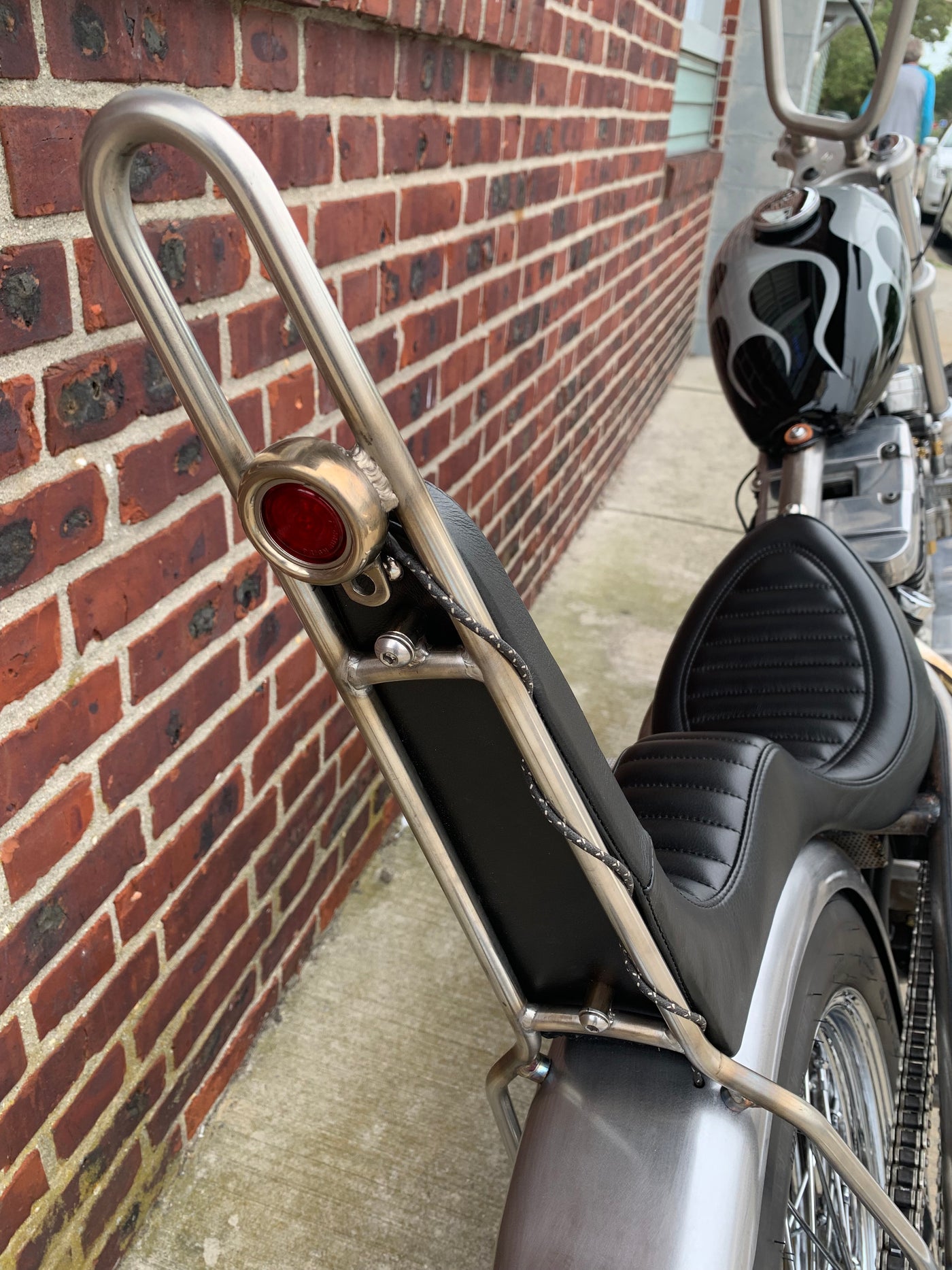 Paul Duffy Resides in Pine Beach, New Jersey. Pauls Makes his living as a Navy Welder on base, but started Duffy Metal Works to pump out some side work, which includes this properly proportioned Sportster. Paul picked up this 1997 Sportster with the intent of hardtailing it. Like many builders, he recognized that the Sportster is the perfect model for a chopper project. After making the transition from BMX bikes, to Import motorcycles, Paul now spends his time tinkering with Harleys. The finished result is another prime example of what you can build using the Throttle Addiciton Sportser Hardtail kit.
