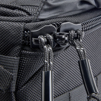 The EXFIL-18’s visual similarity to their decade old EXFIL-7 design is no accident. This new set of saddlebags handles business with the same smart design and rugged construction as every bag in the moto luggage arsenal. As its name implies, each EXFIL-18 saddlebag holds three six-packs of 12-ounce cans. Like the EXFIL-36, EXFIL-18 saddlebags are a universal fit system that hangs under the seat and over the rear fender on an easy-to-install yoke with Velcro adjustment.