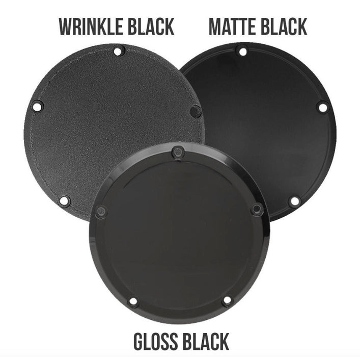 Custom Laser Derby Cover "129" is available in Matte Black, Gloss Black and Wrinkle Black finishes. Not available in chrome. Most aftermarket covers take a different gasket than stock covers. Get yours here.