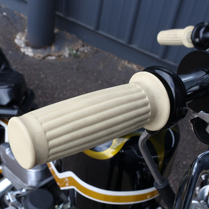 Throttle Addition tour grips are great for those wanting a vintage feel and comfortable fit. These motorcycle grips are injection molded from soft durable rubber and available in black, ivory, cobalt and gray. It is recommended to install these grips with compressed air or a bit of WD-40.